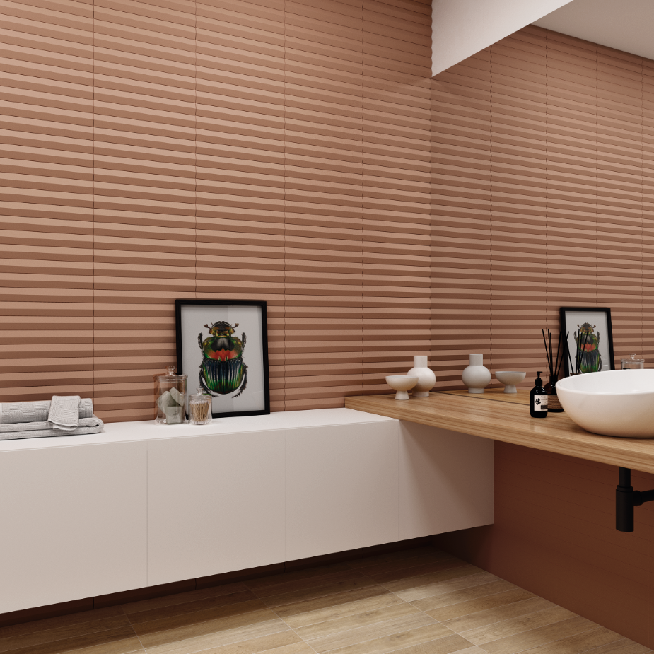 Wow Faces Hill Tan 5×40 płytka trójwymiarowa. Jeśli poszukujesz czegoś więcej niż zwykłych, płaskich płytek to dobrze trafiłeś! Kolekcja Faces to seria płytek o trójwymiarowej formie. To płytki, które wychodzą poza schemat, oferując dynamiczne powierzchnie inspirowane formami natury – dolinami, wydmami, wybrzeżem i wzgórzami. Wąskie formaty 5×40 cm oraz dekoracje 3D 12,5×25 cm dostępne są w aż dziewięciu odcieniach – od neutralnych barw ziemi po intensywniejsze tonacje. Płytki możemy łączyć ze sobą na wiele różnych sposobów. Raz wklęsłe a potem wypukłe, szpiczaste czy zaokrąglone, płytki stworzą ciekawą grę cieni i struktur. Płytki nadadzą przestrzeniom artystycznego wyrazu. Możesz je wykorzystać zarówno we wnętrzach klasycznych jak i nowoczesnych.