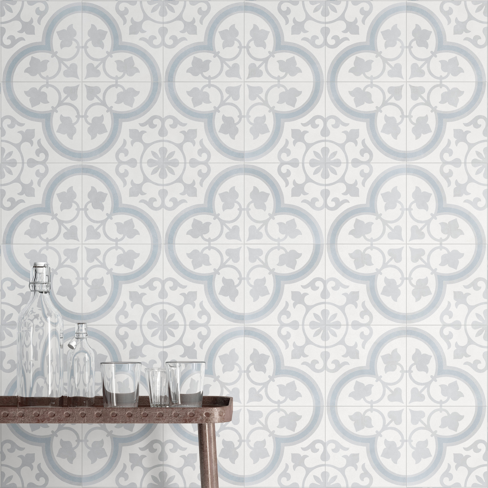 Harmony Havana Silver Ornate 22,3×22,3 dekoracyjny wzór. Jest to płytka, która należy do kolekcji Havana od producenta Harmony. Kolekcja czerpie inspiracje od tradycyjnych płytek cementowych. Swoją nazwą nawiązuje do stolicy Kuby, ponieważ tego typu płytki można zauważyć w wielu kubańskich budynkach. Kolekcja charakteryzuje się ciekawymi wzorami geometrycznymi o delikatnych kolorach, które z pewnością nadadzą pomieszczeniom oryginalności i subtelności. Kafle będą pasować do pomieszczeń utrzymanych w orientalnym stylu a także w tych bardziej retro oraz vintage. Atutem jest ich delikatna paleta kolorów utrzymana w niebieskich odcieniach. W związku z tym, iż płytka może zostać wykorzystana nazewnątrz budynków, polecamy Harmony Havana jako wykończenie tarasów czy balkonów, gdzie płytki wprowadzą bardzo przyjemny i komfortowy styl, który kojarzyć się będzie z wakacyjnym klimatem.