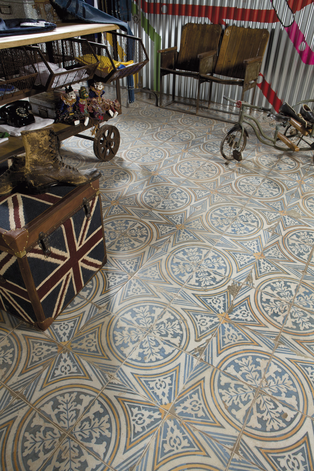 Peronda FS-1 płytka rustykalna 45x45cm. Płytka podłogowa o matowym wykończeniu. W kolekcji FS Original możemy znależć płytki w formacie 45×45, które pokryte są kwiatowymi i geometrycznymi wzorami. Projekt płytek wykonał projektant Francisco Segarra, który specjalizuje się w projektach utrzymanych w industrialnym stylu vintage. W związku z tym kafelki będą bardzo dobrze prezentować się w rustykalnych pomieszczeniach, które wymagają użycia celowo postarzanych płytek. Dodatkowo dużym atutem jest kolorystyka rustykalnych kafli. Wszystkie utrzymane są w odcieniach żółci, zieleni i błękitu co jeszcze bardziej podkreśla ich retro charakter. Będą pasowac zarówno jako wykończenie łazienek i kuchni jak i salonów oraz sypialni.