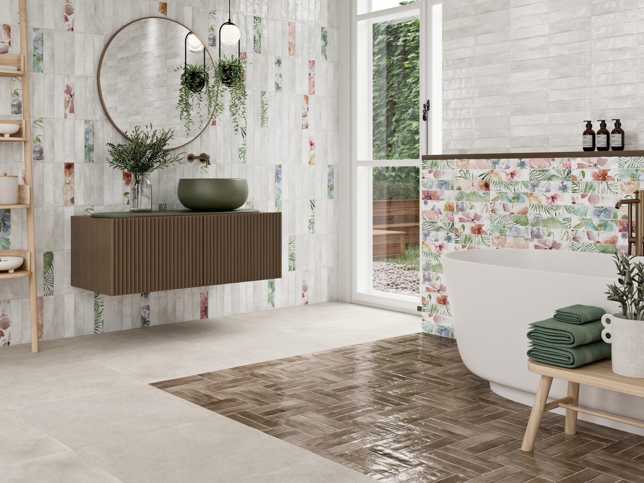 Durstone Imagine Tropic Brillo 6×25 cegiełka w kwiaty. Kolekcja Imagine to płytki cegiełki w formacie 6×25. Każdy kolor płytki ma cztery warianty: wykończenie błyszczące z gładką powierzchnią lub powierzchnią, która pokryta jest wystającymi liniami, a także te same warianty tylko w wykończeniu matowym. W większości kolory dostepne w kolekcji to kolory ziemi. Oprócz tego znajdziesz butelkową zieleń, błękit i musztardowy żółty. Bardzo oryginalna kolekcja płytek cegiełek, które sprawią, że twoje wnętrze będzie niepowtarzalne. Możesz je wykorzystać w każdym rodzaju powierzchni: w salonach, kuchniach  i łazienkach. Świetnie sprawdzi się także jako wykończenie przestrzeni publicznych.