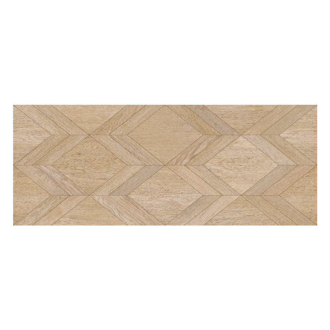 Porcelanosa Gent Diamond 3D Arce 59,6×150 dekoracyjna płytka drewnopodobna. Kolekcja płytek Gent to luksusowa seria płytek imitujących drewno. Piękne usłojenie płytek i delikatna struktura idealnie odwzorowują wygląd prawdziwego drewna. Płytki bazowe utrzymane są w stonowanych odcieniach zarówno ciemnych jak i jasnych a dodatkowo znajdziemy także kolor szary. Płytki dostępne są w formatach: 29,4×180, 19,3×180 i 23×150. Duży format płytek sprawia, że całość aranżacji wygląda bardzo nowocześnie. Ponadto kolekcja została uzupełniona o płytki dekoracyjne o mocnych reliefach w formacie 59,6×150. Płytki dekoracyjne pasuja kolorystycznie do płytek bazowych. Dzięki temu możemy tworzyć spójne aranżacje.