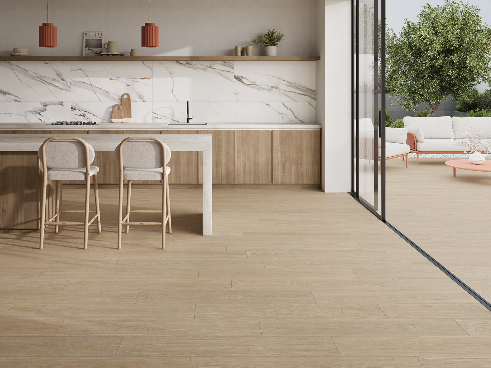 Fanal Livo Natural 22×120 płytka drewnopodobna. Kolekcja Livo to seria płytek drewnopodobnych. Płytki z tej kolekcji charakteryzują się delikatną grafiką i subtelnym usłojeniem.  Dostepna w trzech stonowanych odcieniach brązu. W serii znajdziemy płytki w klasycznym formacie 22×120 a także w formacie 9,8×59,3, który służy do ułożenia płytek we wzór jodełki układanej na „klepkę”. Ponadto seria oferuje płytki dekoracyjne rownież z motywem drewna: płytki 60×120 o ryflowanej powierzchni i płytki w formacie 14,7×14,7 – płytki w styli kitkat. Livo harmonijnie łączy estetykę z praktycznością, oferując trwałość ceramiki z urokiem drewna, co czyni ją doskonałym rozwiązaniem do każdego stylu wnętrzarskiego – od nowoczesnego po klasyczny. Każda płytka dostępna jest także w wykończeniu antypoślizgowym.