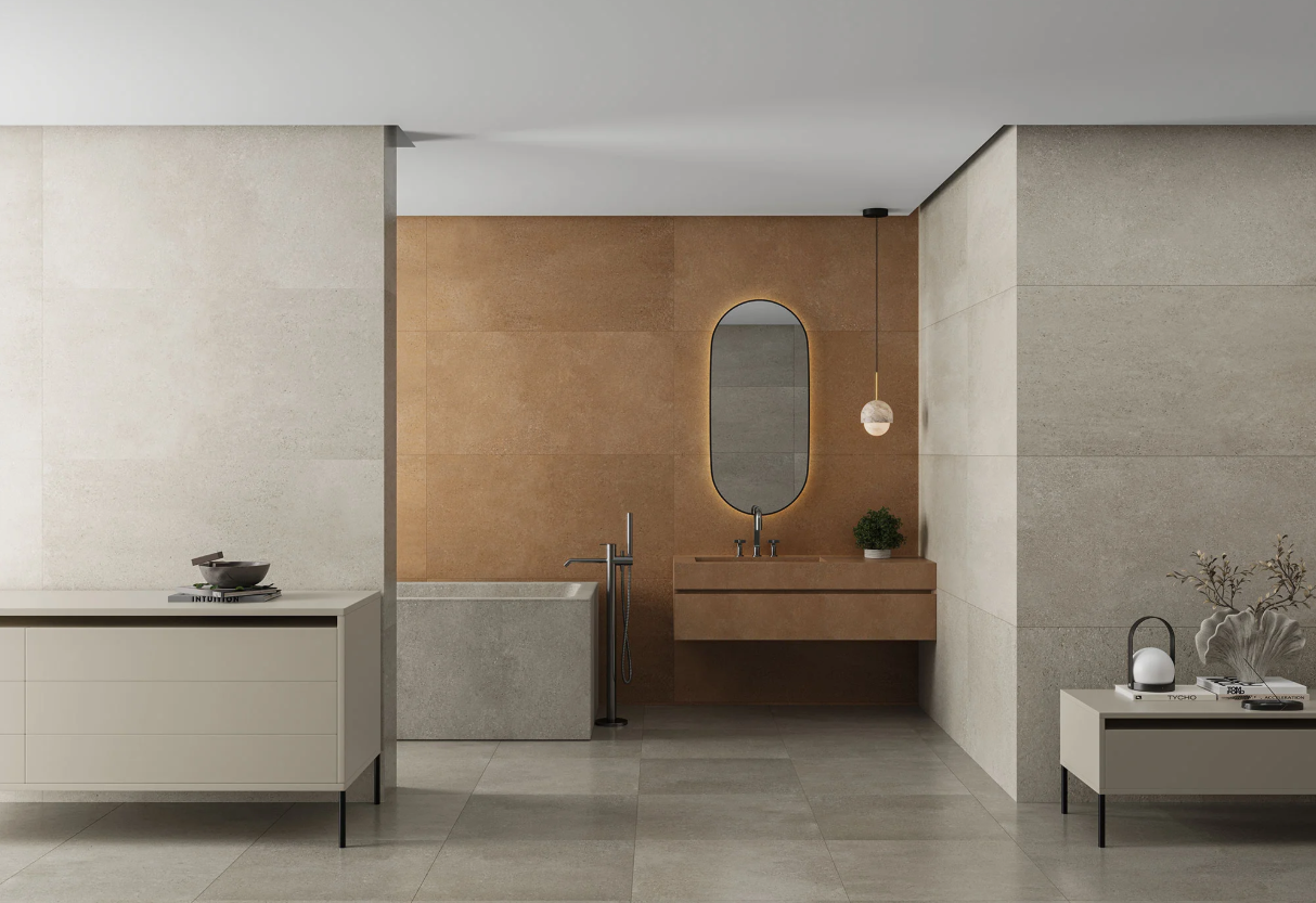 Durstone Terramar Earth 60×120 płytka w stylu rustykalnym. Kolekcja Terramar to seria płytek, które czerpią inspirację prosto z natury. W serii możemy znaleźć dwa jasne kolory płytek, które przypominają przetartą powierzchnię kamienia. Ponadto seria oferuje płytkę w kolorze ceglanym. Wszystkie płytki idealnie sprawdzą się w przestrzeniach, które utrzymane są w stylu rustykalnym, vintage. Są to płytki gresowe dostępne w formatach: 90×90, 45×90, 60×120, 60×60 i 30×60. Można je wykorzystać również na zewnątrz, na tarasach, balkonach a nawet na elewacji. Ponadto seria oferuje gresowe płytki cegiełki w tych samych kolorach a także małe płytki 20×20 wraz z dekorem. Wszystkie płytki sprawdzą się jako uzupełnienie nowoczesnych wnętrz, które śledzą trendy. Kolory ziemii w połączeniu z delikatną powierzchnią płytek to połączenie tradycji z nowoczesnością.