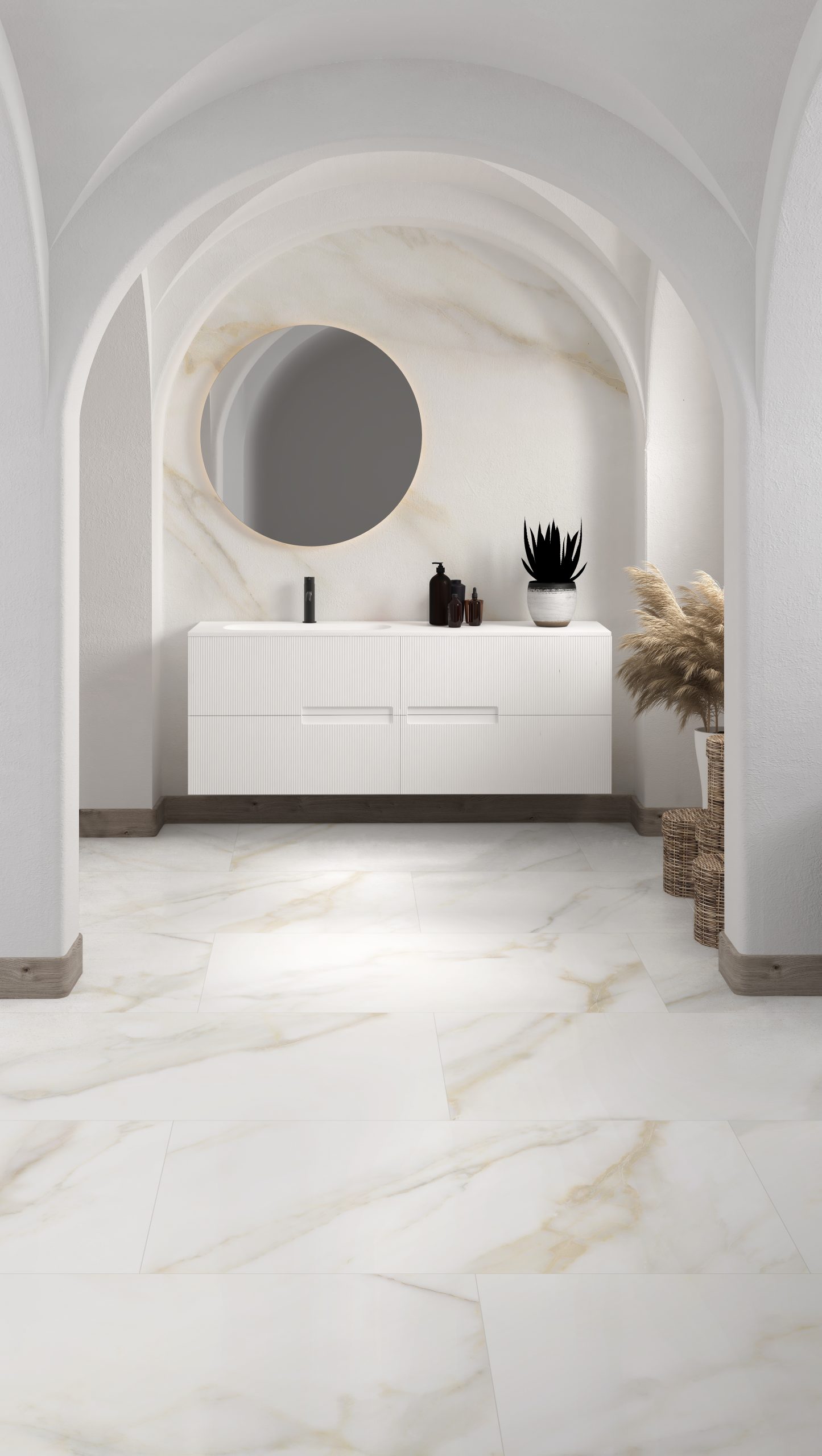 Mykonos San Carlo Gold Satin 60×120 satynowa płytka marmur. Płytka San Carlo Gold to płytka marmuropodobna. Jej użylenie jest niezwykle subtelne i przygadzone – wygląda jakby było mleczne, za mgłą. Użylenie to połączenie koloru szarego ze złotym, które kontrastuje na białym tle. Złoty akcent będzie rozjaśniał każdą aranżację. Jest to bardzo elegancki produkt, sprawdzi się w każdym rodzaju pomieszczeń. Taka płytka będzie współgrać zarówno z szarościami, jak i beżami, dlatego też jest to bardzo uniwersalny produkt. Ponadto płytka ma satynowe wykończenie, które jest bardzo delikatne w dotyku i bardzo łatwe w utrzymaniu czystości. Ta imitacja marmuru ma swoje zastosowanie zarówno w salonach i sypialniach, jak i w łazienkach. Płytka ma też wysokie parametry techniczne, dzieki czemu spełni oczekiwania najbardziej wymagających klientów.