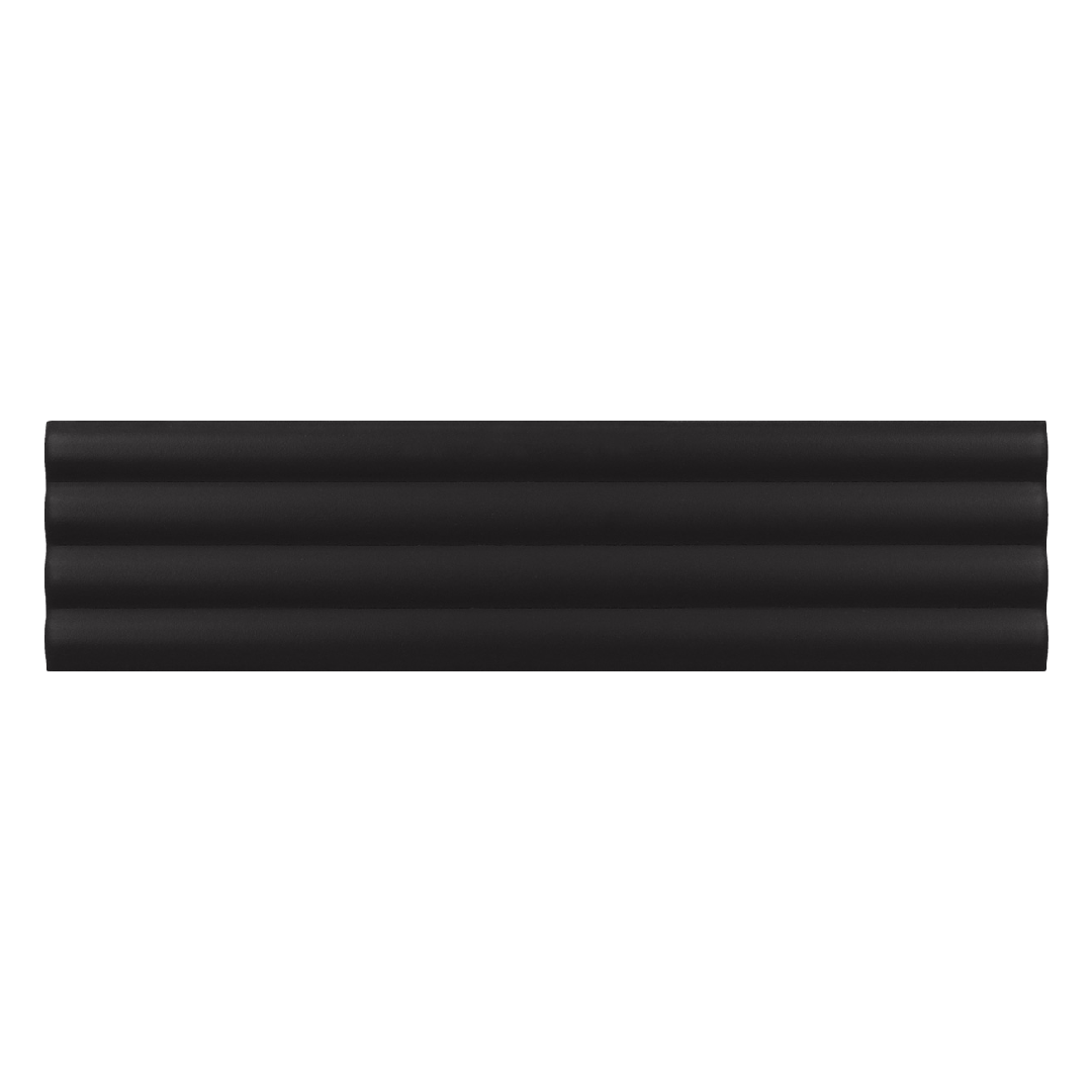 Equipe Costa Nova Black Onda Matt 5×20 cegiełka 3D. Płytki z kolekcji Costa Nova czerpią inspirację z portugalskiego miasteczka Costa Nova, które słynie ze swoich kolorowych dachów przybrzeżnych domków. W kolekcji znajdziemy aż 15 kolorów płytek. Dostępne są w wykończeniu matowym i błyszczącym. Ponadto serię uzupełniaja płytki dekoracyjne o delikatnych reliefach. Praia – spiczaste trójwymiarowe płytki, które symbolizują dachy kolorowych domków i Onda – zaogrąglone wałeczki, które czerpią inspirację z portugalskich fal. Każdy kolor z kolekcji dostępny jest zarówno w wesji bazowej jak i dekoracyjnej. Dzięki temu możemy tworzyć ciekawe aranżacje i łączyć płytki na wiele różnych sposóbów.