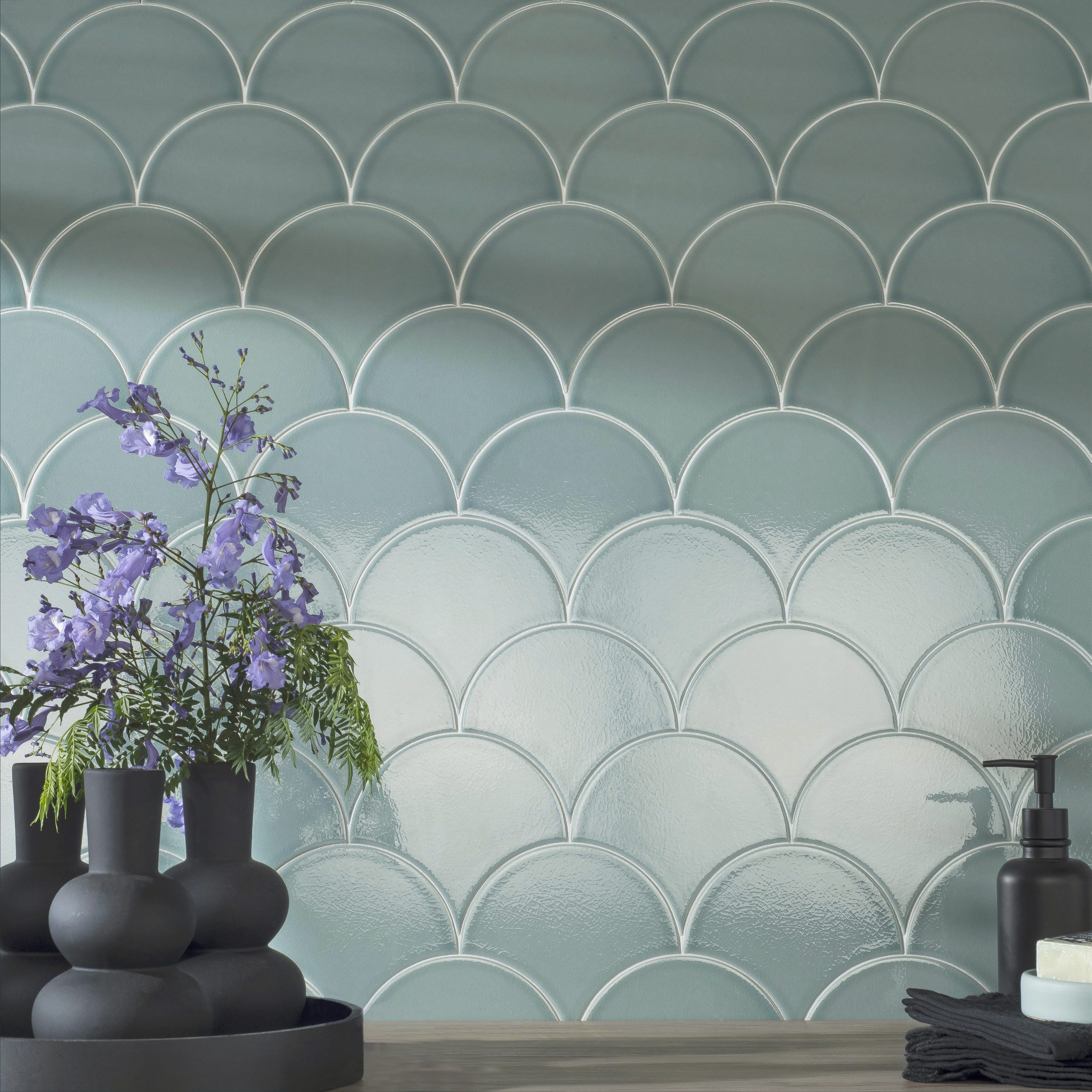 Amadis Crackle Scale Lagoon 15,5×17 płytka w kształcie łuski. Kolekcja Ceackle Scale to seria dekoracyjnych płytek w kształcie łuski. Dodatkowym autem płytek jest ich spekana powierzchnia, która powstała podczas techniki podwójnego wypału płytek. Płytki łuski to rozwiązanie, które idealnie sprawdzi się jako wykończenie łazienek czy kuchni. Sprawdzą się jako płytka prysznicowa a także pięknie wypełnią przestrzeń pomiędzy szafkami a blatem w kuchni. W serii znajdziemy stonowane kolory, które wpisują się w obence trendy. Taki rodzaj płytek sprawdzi się zarówno w przestrzeniach klasycznych, jak i nowoczesnych.