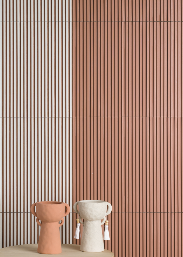 Natucer My U Deluxe Clay Line 10×39 płytka trójwymiarowa. Kolekcja My U Deluxe to kolekcja trójwymiarowych. Płytka jest ryflowana a a rowki mają kształt litery „U”. Seria inspirowana jest geometrycznymi i minimalistycznymi liniami, tworząc dzieło w stylu Art Deco. Jej delikatne rowki  tworzą iluzje ruchu, który ożywia nasze ściany. Płytka ma matowe wykończenie. Jest bardzo dekoracyjna, przypomina sztukaterię. My U Deluxe to płytka gresowa, dzięki czemu jest funkcjonalna zarówno wewnątrz, jak i na zewnątrz. Kolekcja ma szeroką gamę kolorów o doskonałej prezencji, które przemienią każdy zakątek w kultowe miejsce. Każda płytka zazębia się se sobą, przez co tworzy spójną całość. Jest to produkt, który sprawdzi się w przestrzeniach, które potrzebują oryginalnej aranżacji ściennej.