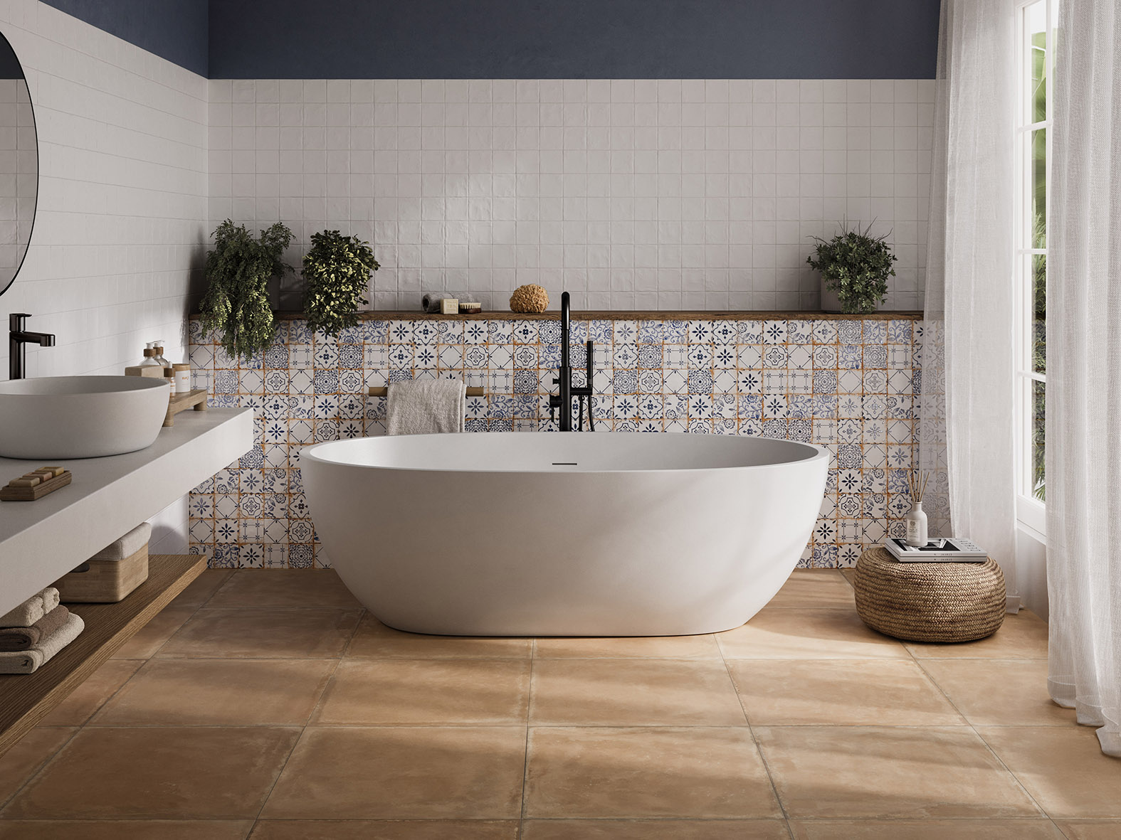 Płytki bazowe mają format 60×60 cm, co czyni je idealnym wyborem zarówno do wnętrz domowych, jak i stylowych przestrzeni komercyjnych. Matowa powierzchnia podkreśla naturalność kolekcji i dodaje jej autentycznego, ręcznie robionego wyglądu. Ponadto w serii znajdziemy także dekor w formacie 10×10, który jest miksem śródziemnomorskich wzorów.