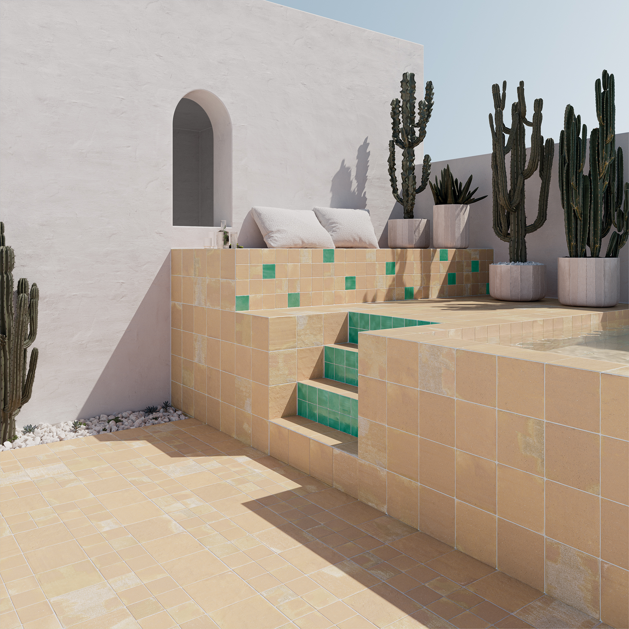 Płytki zdecydowanie nawiązują do obecnych trendów, czyli powrotu do naturalnych odcieni i naturalnych surowców. Płytki idealnie sprawdzą się jako wykończenie tarasów czy ogrodów zimowych.