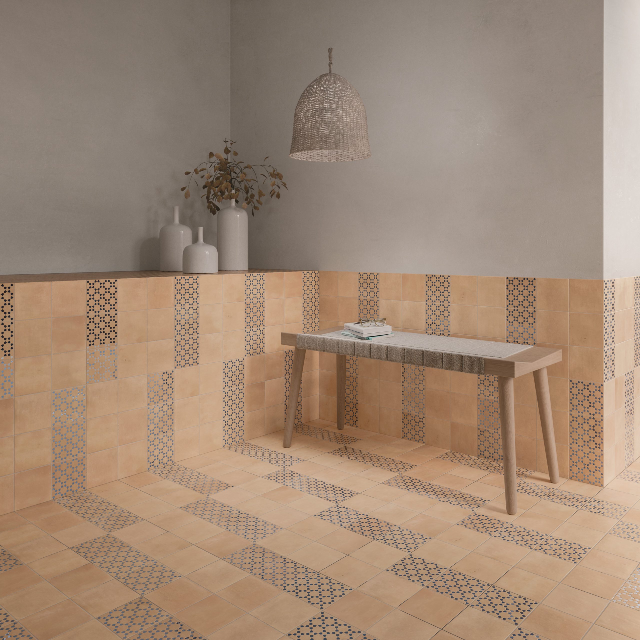 Wow Bejmat Decor Tan Azur 15×15 płytka dekoracyjna. Kolekcja Bejmat to płytki, które nawiązują do stylu zellige – ręcznie robionych płytek, które pochodzą z Maroka. Płytki z kolekcji Bejmat charakteryzują się nieregularnymi krawędziami i ręcznie robionym wyglądem. W serii znajdziemy płytki zarówno o błyszczącym jak i matowym, wykończeniu. Ponadto seria oferuje dekory, które zdecydowanie nawiązują do marokańskiego stylu. Dużym atutem kolekcji jest to, że płytki są gresowe. Oznacza to, że możemy wykorzystać je nie tylko na ścianach ale i na podłogach! Sprawdzą się nawet jako płytka tarasowa ze względu na mrozoodporność.