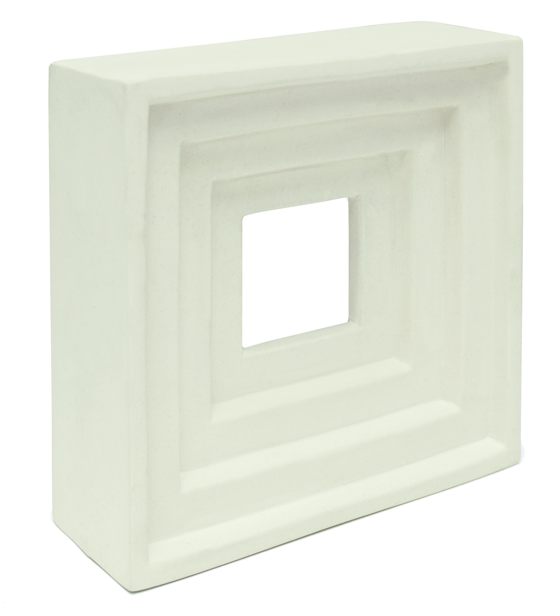 Harmony Cloth White 20×20. Jest to bardzo wyjątkowy produkt, ponieważ jest to płytka, którą można zastosowac jako ściankę działową. Jest to gruba płytka z dziurą w środku. Dodatkowo swoimi warstwami tworzy trójwymiarową przestrzeń. Jest to też idealny produkt jesli chodzi o aranżacje na tarasach, gdzie świtnie będzie współgrać ze światłem.
