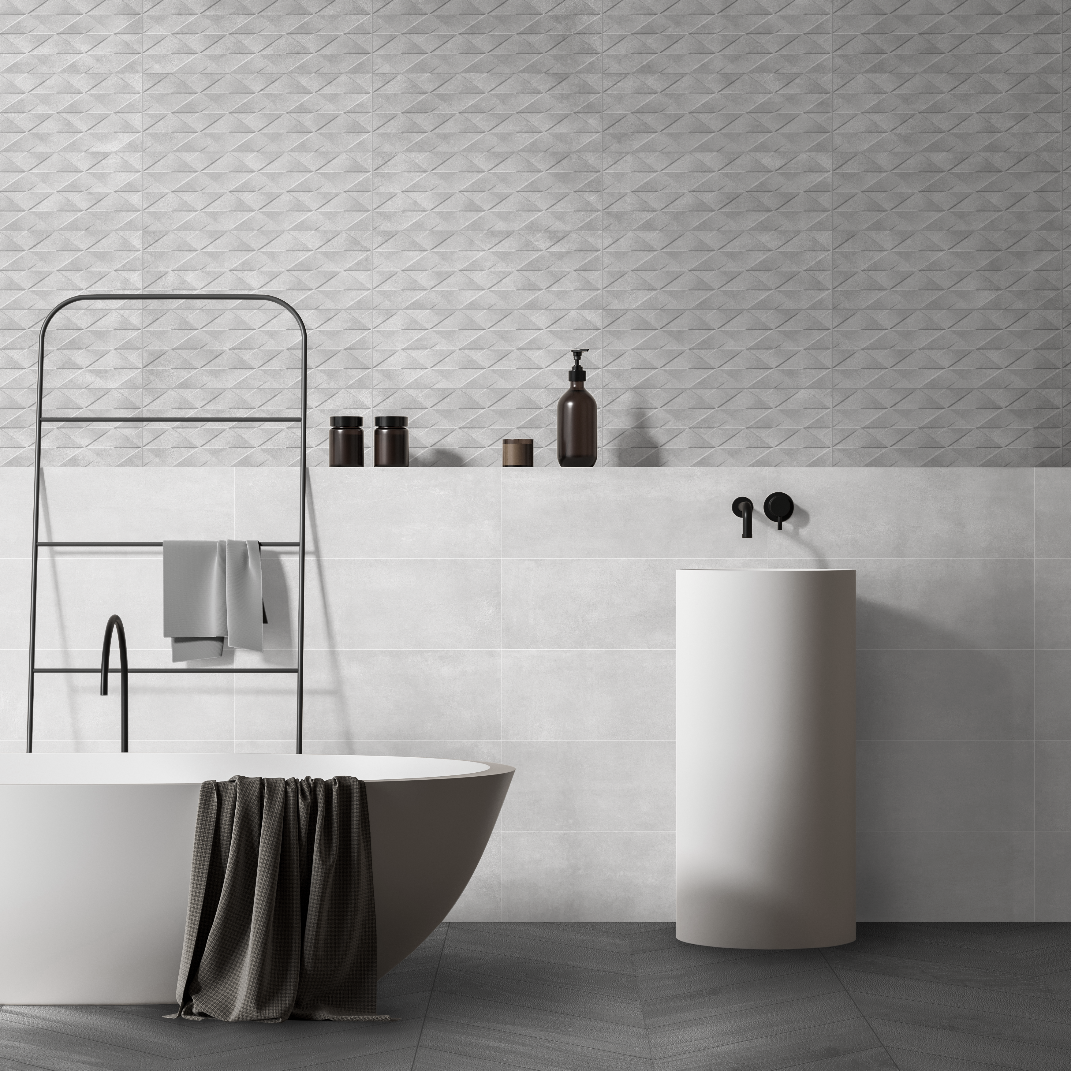 Mykonos Lock Light 30×60 płytka ścienna jak beton. Kolekcja Lock to seria szarych płytek o różnych tłoczonych wzorach. W kolekcji znajdziesz też szarą płytkę bazową, jednak reszta to płytki dekoracyjne o reliefowych wzorach. Płytka została stworzona na bazie białej gliny, w związku z czym sprawdzi się jako płytka ścienna wewnątrz budynków. Wykorzystaj płytki jako dekoracje ścienne w salonie czy łazience. Dostępne wzory sprawdzą się w stylu nowoczesnym, ale także i klasycznym.