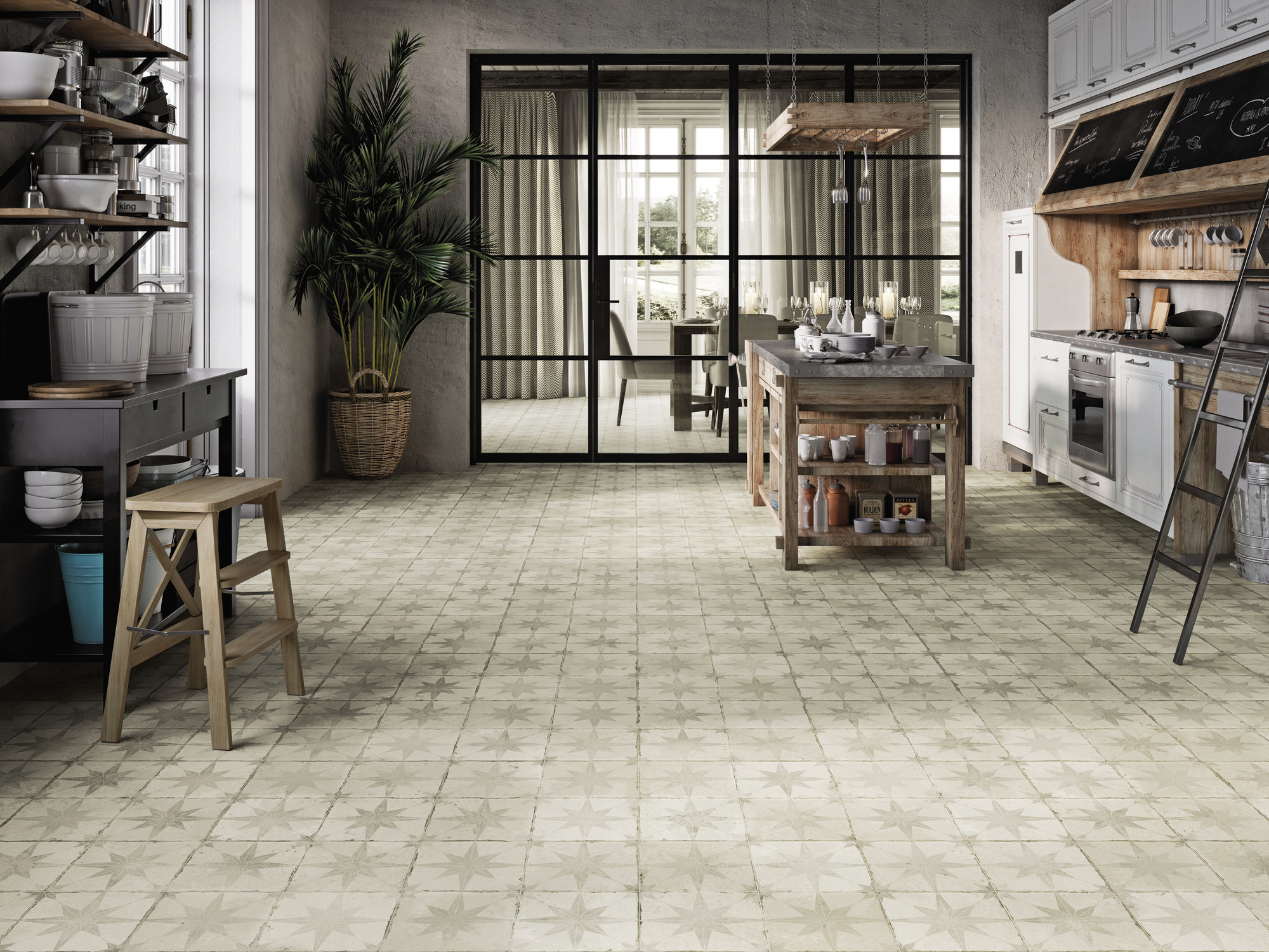 Peronda FS Star White szare gwiazdki 45×45. Kolekcja FS Star to jedna z najbardziej popularnych kolekcji oferowanych przez Peronde. Zdecydownie nas to nie dziwi, ponieważ płytki mają przepiękny rustykalny motyw – różnokolorowe małe i większe gwiazdy. Taki wzór zdecydowanie tworzy niepowtarzalne aranżacje, od których nie sposób oderwać wzroku.  Będzie to świetny wybór zarówno dla wnętrz w stylu vintage jak i tych nowoczesnych. Naszym zdaniem, swietnie sprawdzą się jako wykończenie sypialni, kuchni oraz łazienek a także jako wykończenie przestrzeni publicznych, które chą być stylizowane na stare lata. Płytki są dostępne w wielu wariantach kolorystycznych. Wszystkie płytki mają 4 duże gwiazdy z wyjątkiem koloru ARA, który ma dwie gwiazdy.