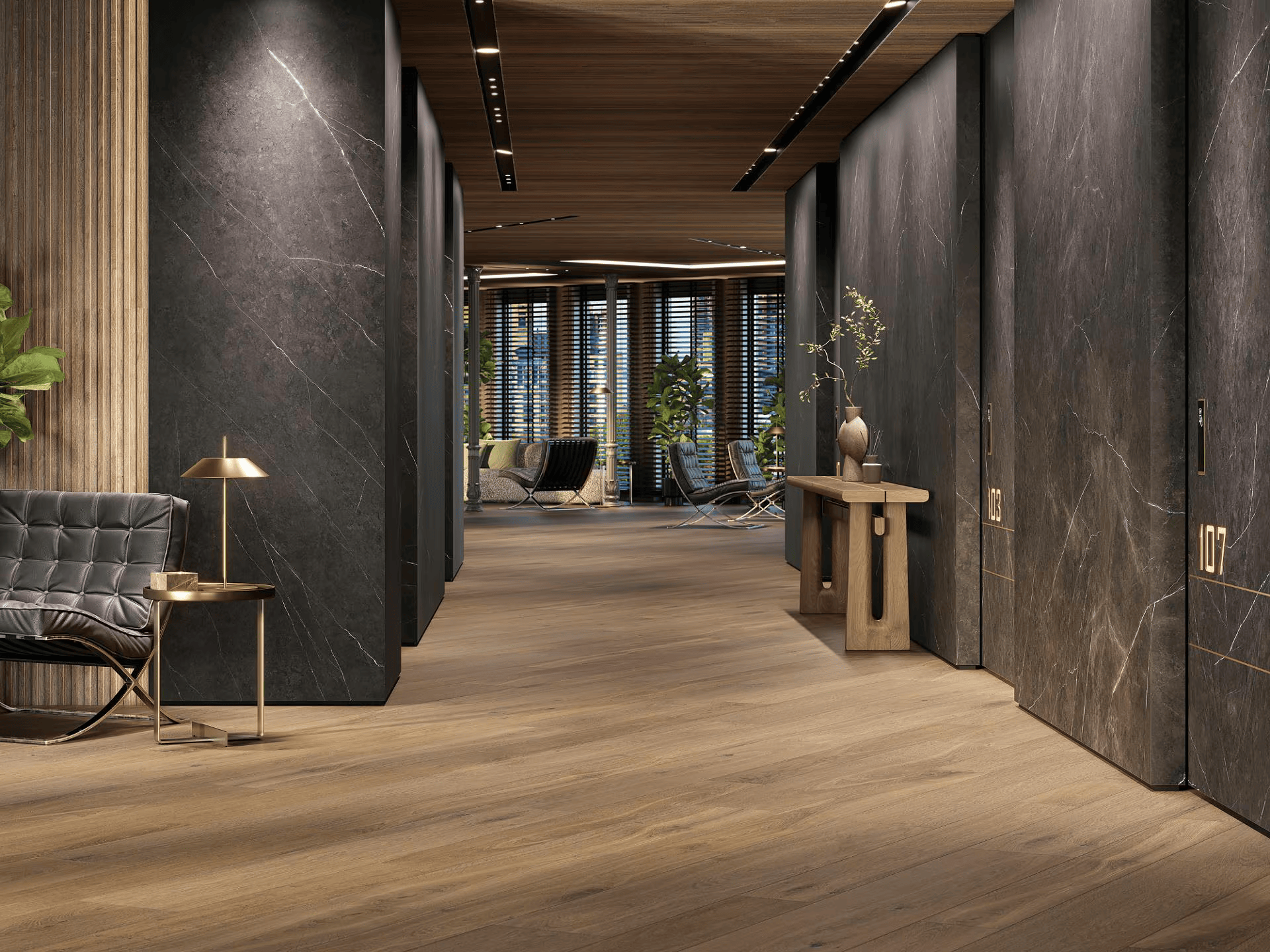 Porcelanosa Gent Roble 29,4×180 płytka drewnopodobna. Kolekcja płytek Gent to luksusowa seria płytek imitujących drewno. Piękne usłojenie płytek i delikatna struktura idealnie odwzorowują wygląd prawdziwego drewna. Płytki bazowe utrzymane są w stonowanych odcieniach zarówno ciemnych jak i jasnych a dodatkowo znajdziemy także kolor szary. Płytki dostępne są w formatach: 29,4×180, 19,3×180 i 23×150. Duży format płytek sprawia, że całość aranżacji wygląda bardzo nowocześnie. Ponadto kolekcja została uzupełniona o płytki dekoracyjne o mocnych reliefach w formacie 59,6×150. Płytki dekoracyjne pasuja kolorystycznie do płytek bazowych. Dzięki temu możemy tworzyć spójne aranżacje.