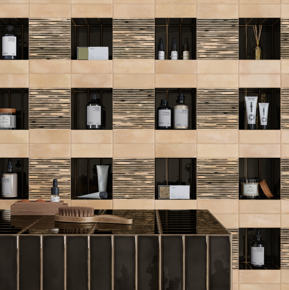 Wszystkie płytki możemy łączyć ze sobą tworząc niesamowite aranżacje. Kolorystyka płytek również jest nieoczywista. Kolor na płytkach rozmywa sie niczym akwarele. W kolekcji znajdziemy klasyczne beżowe i szare odcienie ale także wiele wariantów zieleni i błękitu. Kolekcja jest idealna zarówno do wnętrz klasycznych, jak i nowoczesnych – doda ścianom duszy, głębi i wyjątkowego stylu.