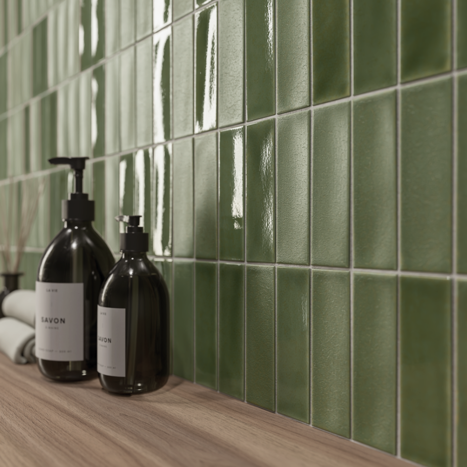 Wow Skin Moss Gloss 4×12,5 płytka cegiełka. Najnowsza kolekcja płytek od producenta Wow to wpasowująca się w obecne trendy seria płytek cegiełek. Kolekcja inspiruje się teksturą skóry i stara się uchwycić jej reliefy. Dzięki temu płytki mają niezwykłe doznania dotykowe. W kolekcji „Skin” znajdziemy dwa wyjątkowe wykończenia: błyszczące (gloss) i matowe (matt). Producent zdecydowanie zachęca nas do łączenia tych dwóch wykończeń. Zestawienie płytek błyszczących z matowymi pozwala na kreatywne tworzenie wzorów światła i cienia, nadając pomieszczeniom dynamikę i głębię. Płytki błyszczące będą odbijać światło i powiększać przestrzeń natomiast matowe płytki wprowadzają element spokoju.