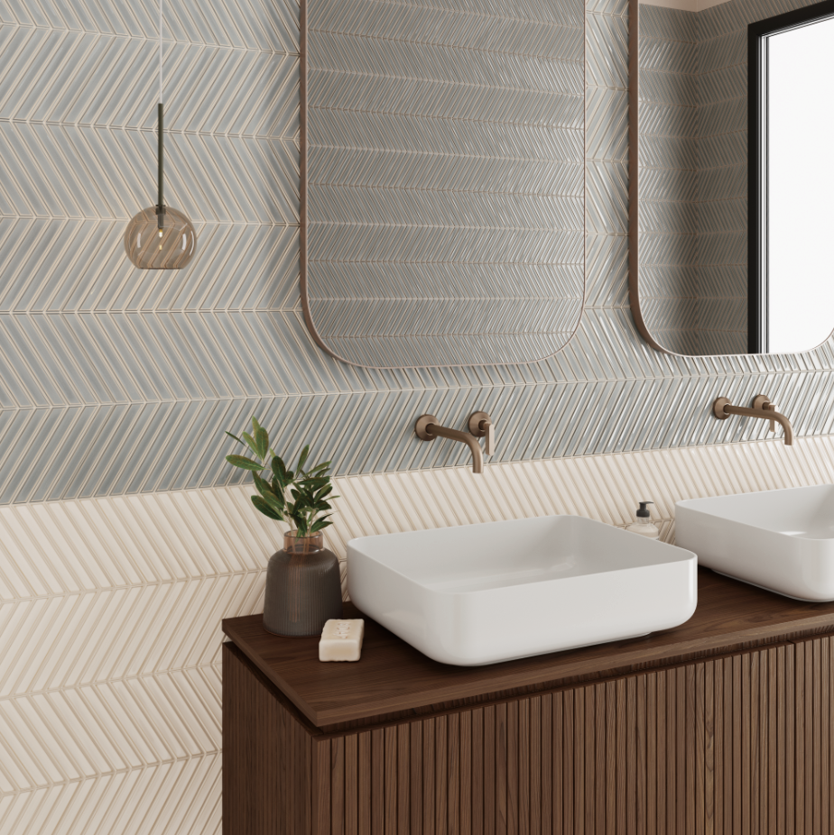 Wow Spike Bars A Deep White 15×25,9 płytka dekoracyjna. Płytki z kolekcji Spike Bars to seria płytek, które mają ścięte boki. Płytka daje nam efekt wąskich cegiełek. Każda płytka ma swój odpowiednik w odbiciu lustrzanym, dzieki czemu płytki można łączyć ze sobą na wiele sposóbów. Jednym z nich jest ułożenie płytki w drobną jodełkę. Płytka łączy się z płytką: Wow Spike Bars B Deep White 15×25,9. W serii znajdziemy zarówno płytki w wykończeniu matowym, jak i błyszczącym. Kolekcja jest wyjątkowa ze względu na swoją kolorystykę. Znajdziemy w niej dużo beżowych odcieni a także mocne odcienie zieleni i niebieskiego. Kolekcja jest przystosowana do łączenia różnych kolorów ze sobą. Sprawdź na jakie sposoby można ułożyć te płytki.